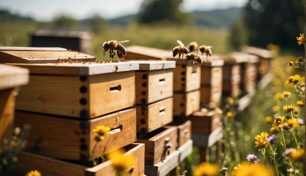 Hives serve as the structural foundation for honeybee colonies, facilitating the production of honey and the proliferation of the species. Beekeeping practices sustain these essential ecosystems.